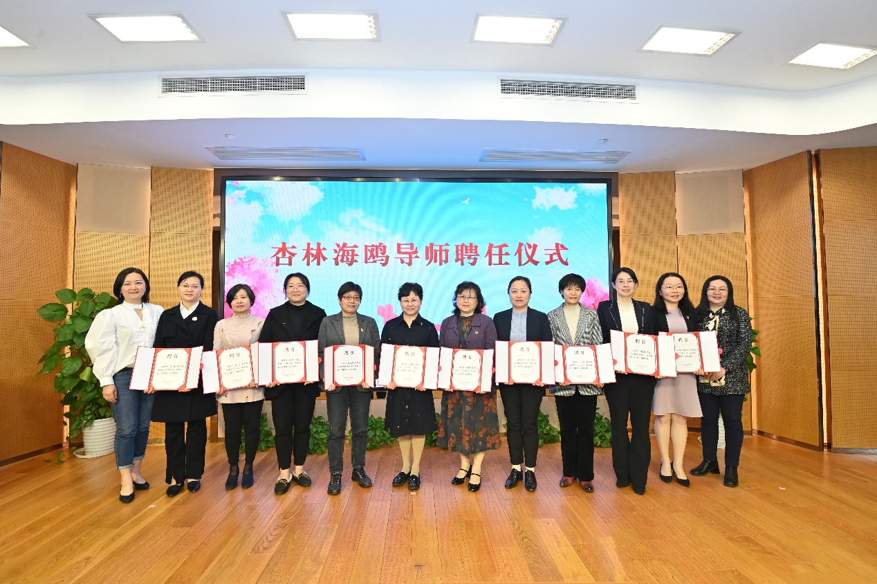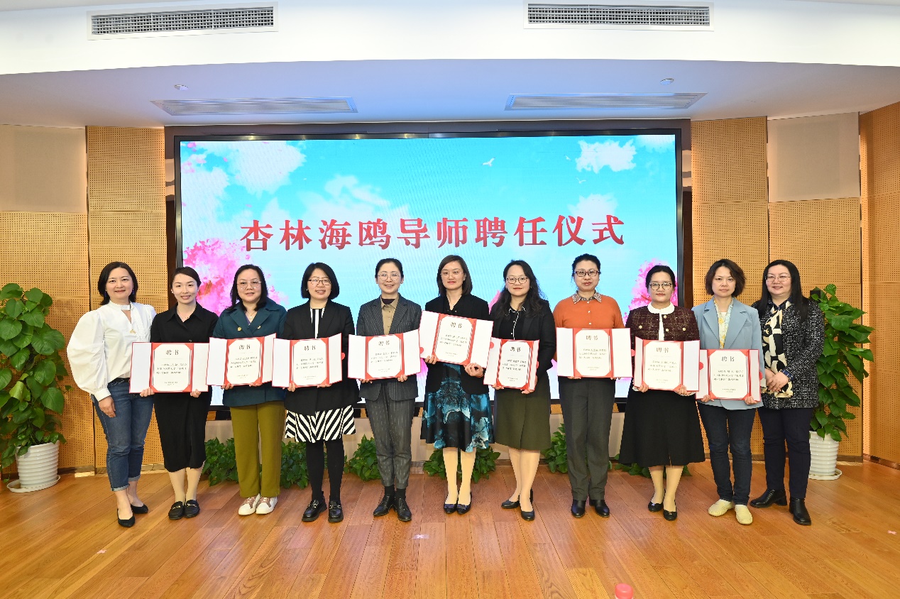 张芳、蔡婷为杏林海鸥导师颁发聘书。