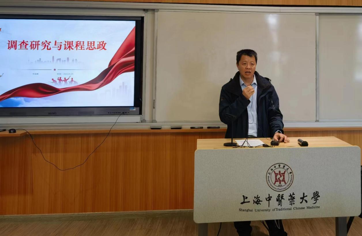 基础医学院辅导员王飞作学情分析汇报。李海峰结合主题教育理论学习和调查研究工作,阐述了调查研究在课程思政建设中的重要性和“求深、求实、求细、求准、求效”的具体方法。