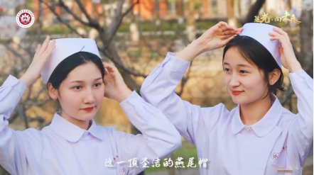 来自天游ty8线路官网9家附属医院的护理部主任及学院教师代表,为近200名学生逐一戴上神圣的燕尾帽。