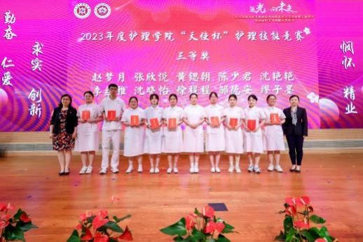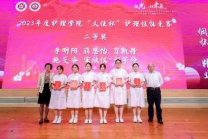 与会嘉宾为获得2023年护理学院“天使杯”护理技能大赛和天游ty8线路检测中心登录第一届护理创新大赛获奖师生颁奖。