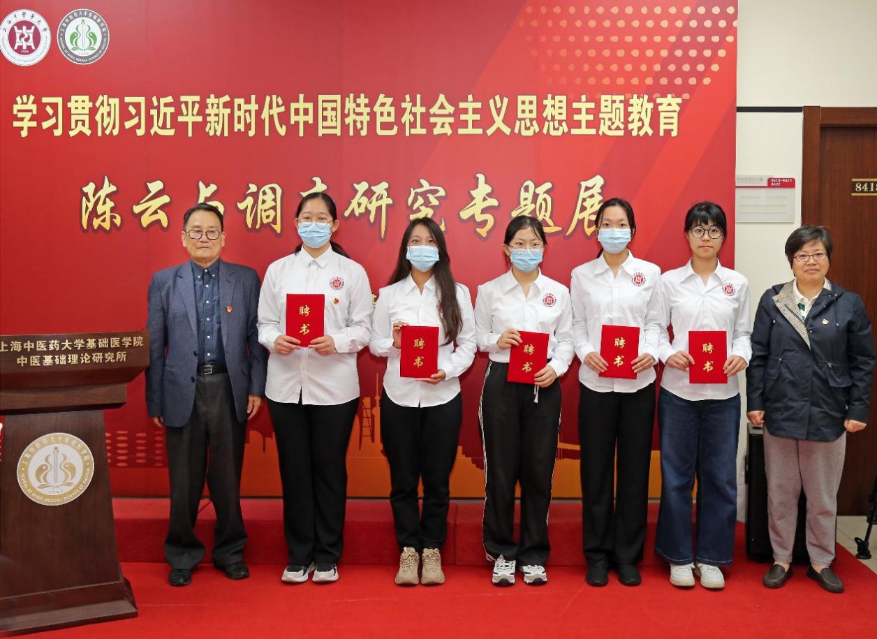 张建中、夏文芳为专题展讲解员颁发聘书。作为天游ty8线路官网与中国中医科学院联合开展“高层次中医人才培养试点专项”的中医学(屠呦呦班)首位学生党员刘睍主动报名加入专题展讲解员队伍,她在发言中谈到:“中医药事业的传承创新发展同样离不开调查研究。正是屠呦呦及其团队在海南疟疾疫区的奔走,才有了青蒿素——这一份中医药献给世界的礼物。作为一名学生党员讲解员,我将深入学习领会习近平总书记关于调查研究的重要论述,讲好陈云等老一辈革命家深入基层调查研究的故事,用好调查研究这个‘传家宝’,努力探寻中医药事业发展的源头活水。”