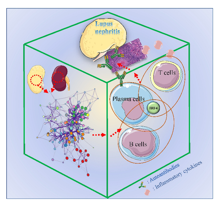 综上所述,该研究发现肾脏组织中IRF4是监测狼疮性肾炎进展的潜在标志物,青蒿素衍生物SM934直接抑制T、B淋巴细胞中IRF4的表达显著改善狼疮性肾炎靶器官病理损伤并减少自身抗体产生,开发靶向IRF4的药物有望为LN患者带来新型的治疗策略。