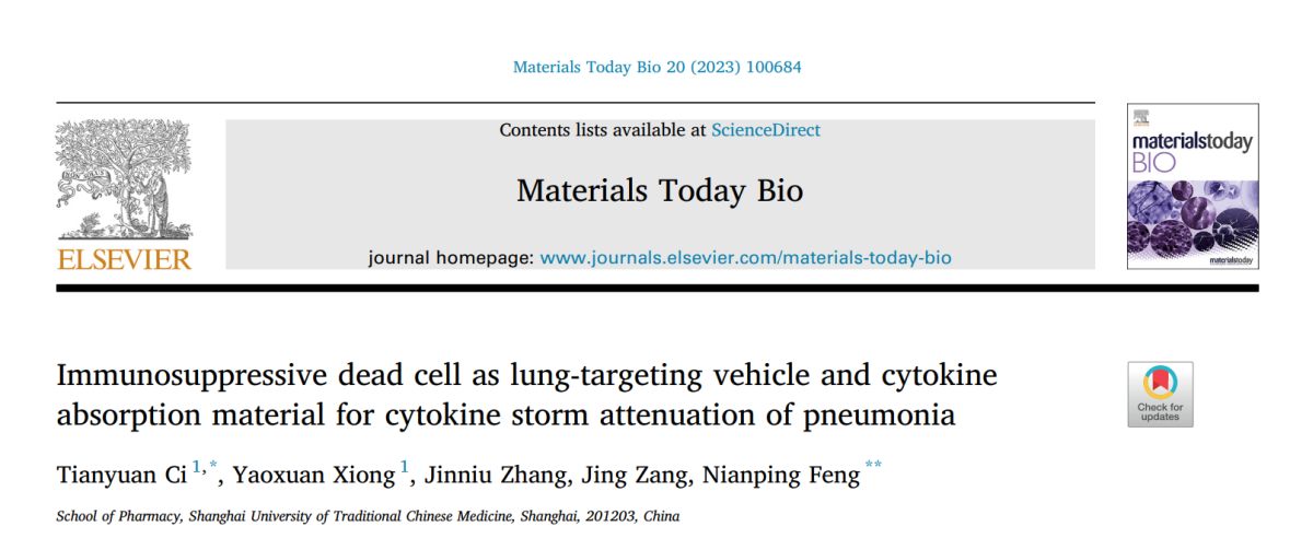 近日,天游ty8线路官网中药学院冯年平/慈天元研究团队利用单核巨噬细胞的冷冻死细胞构建抗炎药物地塞米松/黄芩苷的肺靶向递药系统,用于缓解重症肺炎引起的细胞因子风暴。研究成果Immunosuppressive dead cell as lung-targeting vehicle and cytokine absorption material for cytokine storm attenuation of pneumonia发表于国际期刊Materials Today Bio。