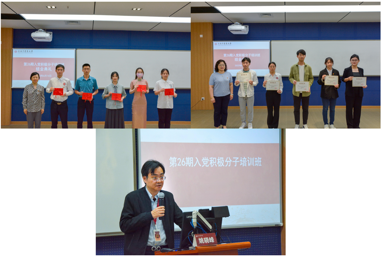 为深入学习贯彻习近平新时代中国特色社会主义思想和党的二十大精神,认真做好入党积极分子的培养教育工作,不断提高入党积极分子的党性修养。由交叉科学研究院分党校承办的第26期入党积极分子培训班于5月31日至6月14日举办,并于6月14日下午在6302教室举行了结业典礼。学校党校副校长、党委组织员徐琳,交叉科学研究院党委书记祝建龙,交叉科学研究院党委副书记姚晓峰和各直属党组织指导老师及本期培训班59名学员参与结业典礼。活动由班主任施晓琴主持。