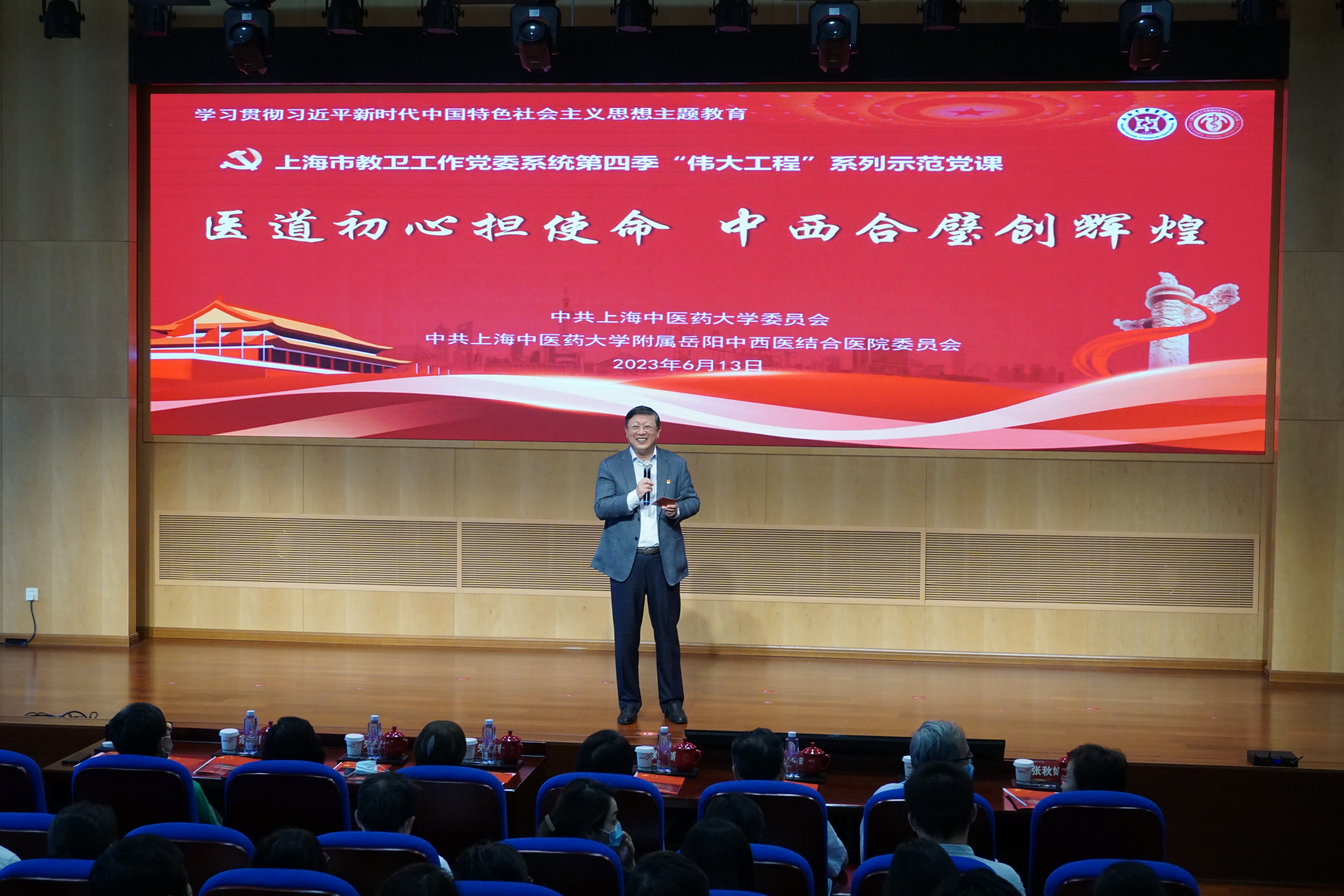 医道初心是什么?中西医合璧如何再创新辉煌?今天,上海市教卫工作党委系统第四季“伟大工程”系列示范党课天游ty8线路检测中心登录主题教育读书班在天游ty8线路检测中心登录附属岳阳中西医结合医院开讲。