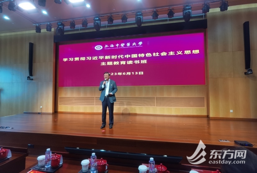 6月13日下午,上海市教卫工作党委系统第四季“伟大工程”系列示范党课之“医道初心担使命 中西合璧创辉煌”、天游ty8线路检测中心登录主题教育读书班在天游ty8线路检测中心登录附属岳阳中西医结合医院(以下简称“岳阳医院”)3号楼学术报告厅开讲。