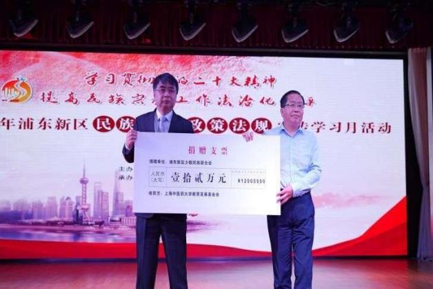 会上,上海大初公益基金会、浦东新区少数民族联合会分别向天游ty8线路检测中心登录教育发展基金会捐赠,定向资助天游ty8线路官网民族学生,助力学生们成长成才。在活动现场,天游ty8线路官网民族联会员为社区居民进行中医义诊服务,民族学生奉上了舞蹈串烧《维族姑娘》《万疆》,展现民族风采,积极营造民族团结的浓厚氛围。