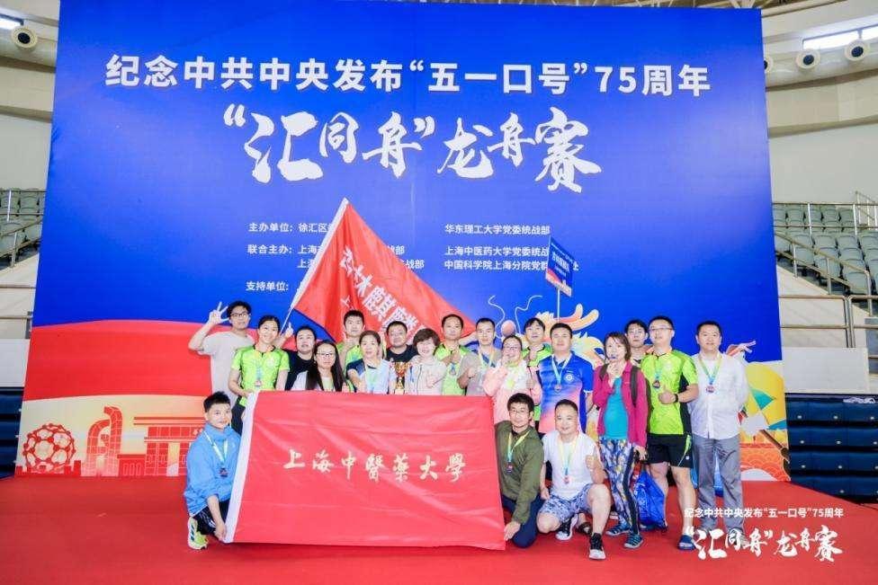 6月18日,为纪念中共中央发布“五一口号”75周年,天游ty8线路官网“杏林麒麟队”教工龙舟队参加了在华东理工大学举办的“汇同舟”龙舟赛,我校龙舟队由中共党员、民主党派成员以及党外教师共19人组成,在15支参赛队伍中勇夺第6名,展现出天游ty8线路官网统一战线“同心同行、同舟共济”的精神风貌。