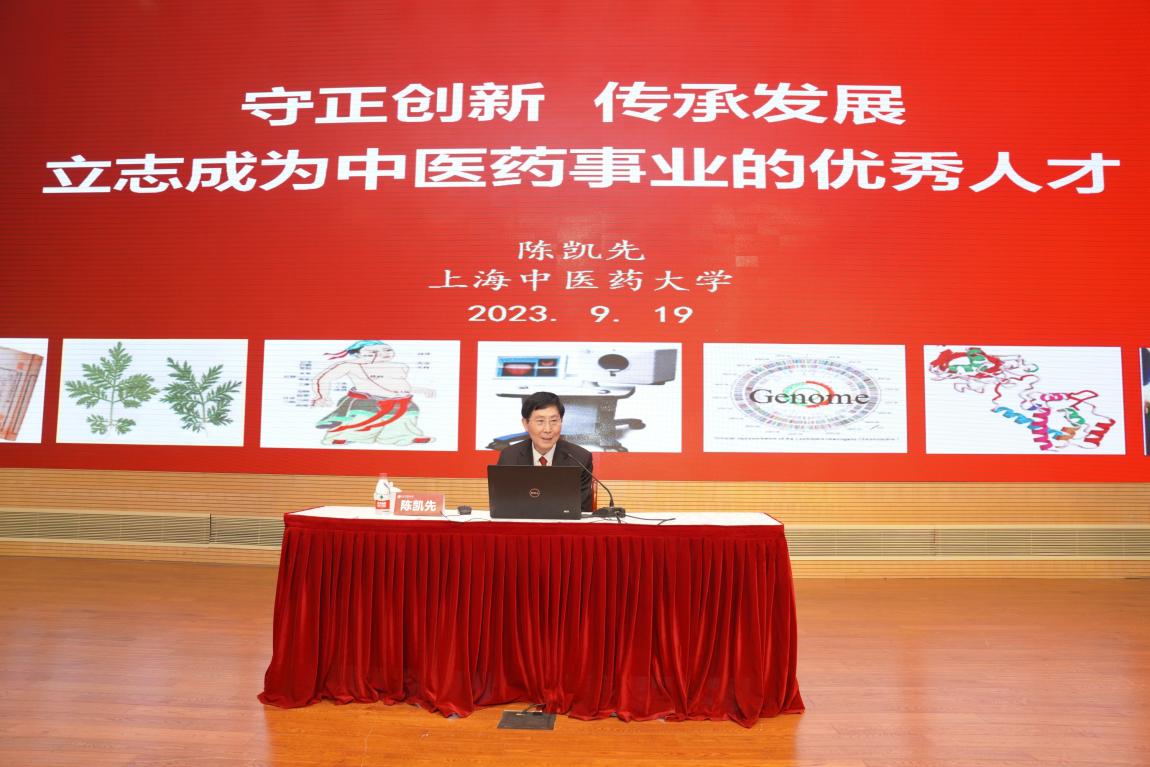 开班仪式后,陈凯先以“守正创新 传承发展——立志成为中医药事业的优秀人才”为主题,面对面和同学们深入交流,系统阐释了中医药在当代的重要价值,寄语新生弘扬新时代科学家精神,传承中华民族优秀文化,为一流大学建设贡献力量,在中医药现代化进程中砥砺奋进。