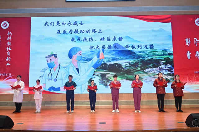 “教书先教人。”“用‘红色基因’的精神品质引领‘白衣天使’的职业道德。”马克思主义学院师生带来的沉浸式舞台剧《赓续杏马初心,汲取奋进力量》生动演绎了“杏马人”“铸魂育人、细照笃行”的使命初心。马院教师对于如何给学生的心灵埋下真善美的种子,如何引导学生扣好人生第一粒扣子的孜孜不倦的探索,令人深切感受到思政课教师使命光荣,责任重大。