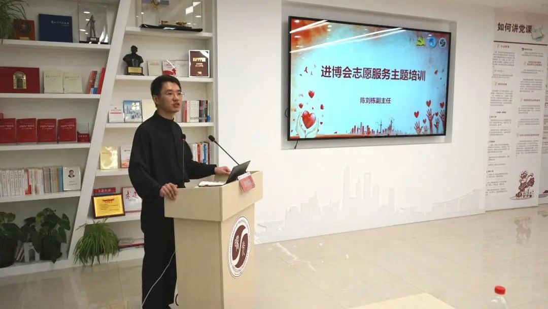 陈刘栋为全体志愿者作“进博会志愿服务主题培训”。