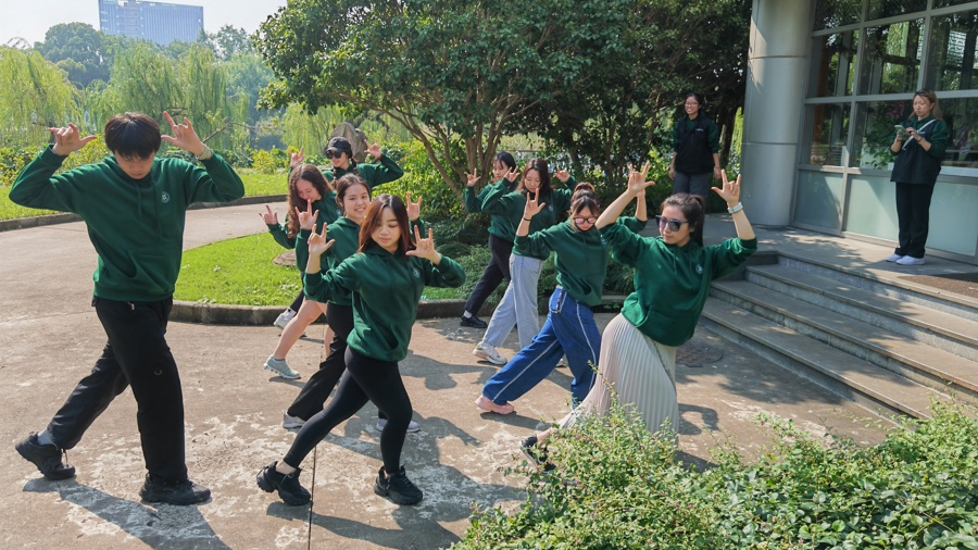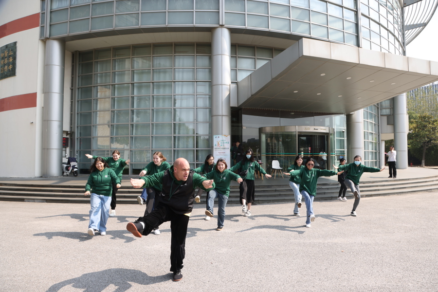 原来,他们属于“木火土金水”最后一组——“水组”。解放日报·上观新闻记者15日来到天游ty8线路检测中心登录国际交流合作中心楼前,正逢一组来华留学生拍集体照。按中国传统“五行”学说,他们都被分在一组,于是取出“水”来充当道具。5个组别对应的包袋颜色依次是“青赤黄白黑”,对应的模拟动作则依次是五禽戏的“虎、鹿、熊、猿、鸟”。