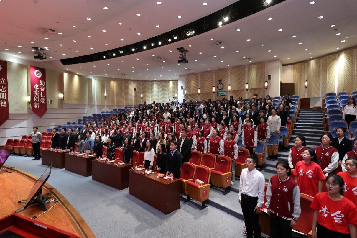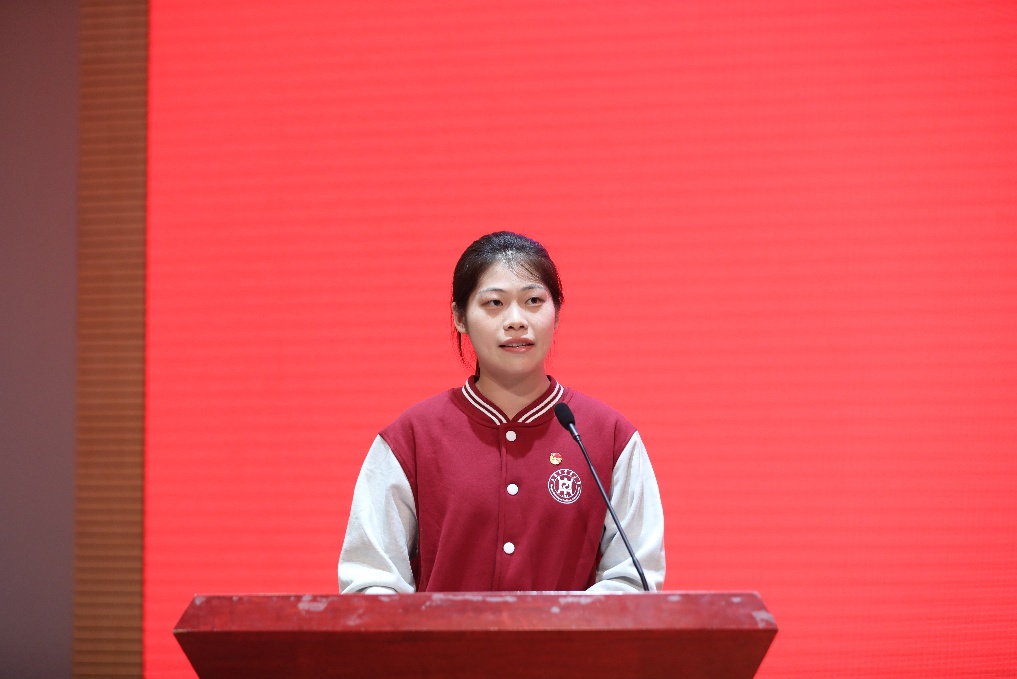 团员青年代表、第二十二期“青马工程”培训班学员蔡嘉姮发言。她表示,将以最饱满的热情投入到学习中,读原著、学原文、悟原理,不断增强政治素养、理论修养,让心中的红色种子开花结果,真正成为一名坚定的马克思主义者,成为习近平新时代中国特色社会主义思想的忠实信仰者、自觉践行者、坚定捍卫者。