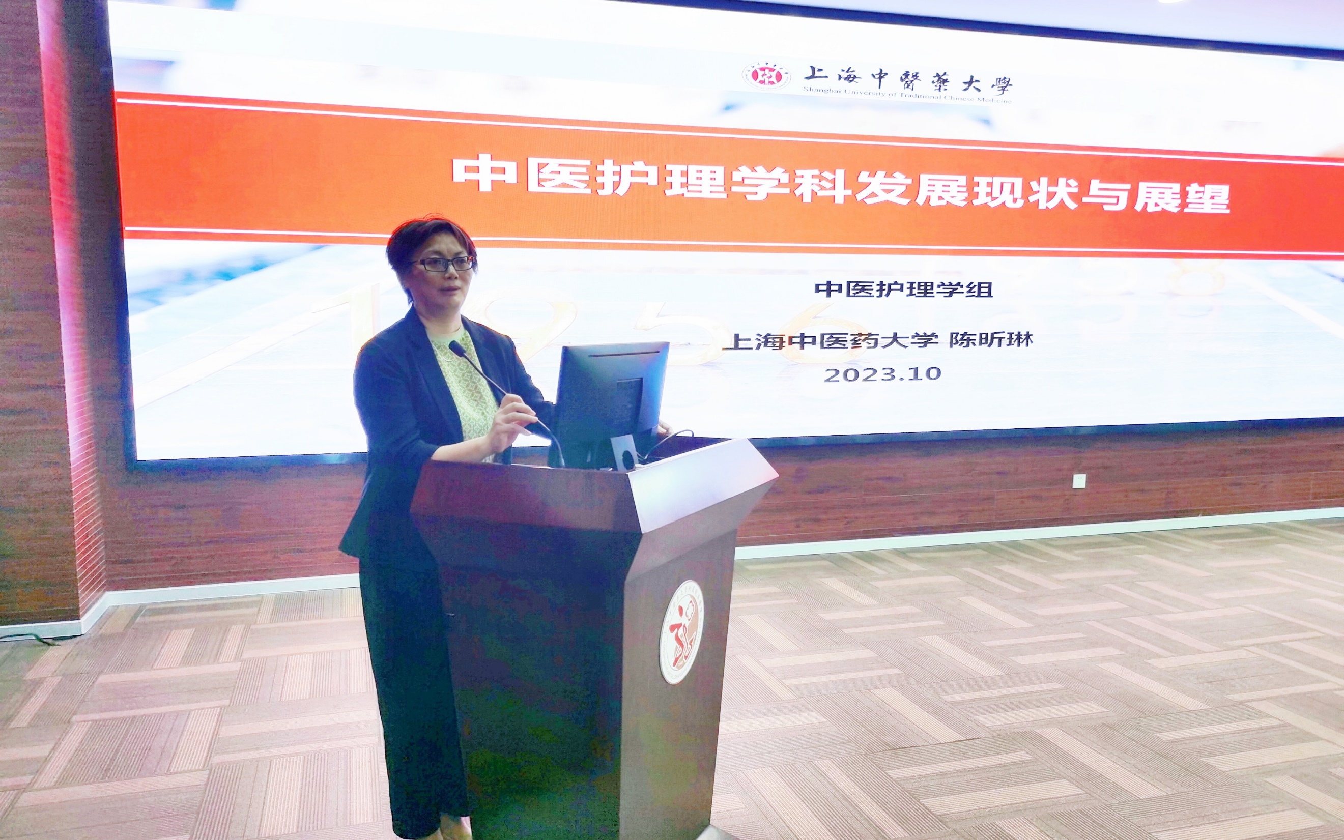 在交流环节,陈昕琳围绕“中医护理学科发展现状与展望”进行了分享,通过分析中医护理学科的发展里程,提出了从中医护理技术、教育体系、科研创新、人才等多维度统筹推动护理高质量发展的路径。