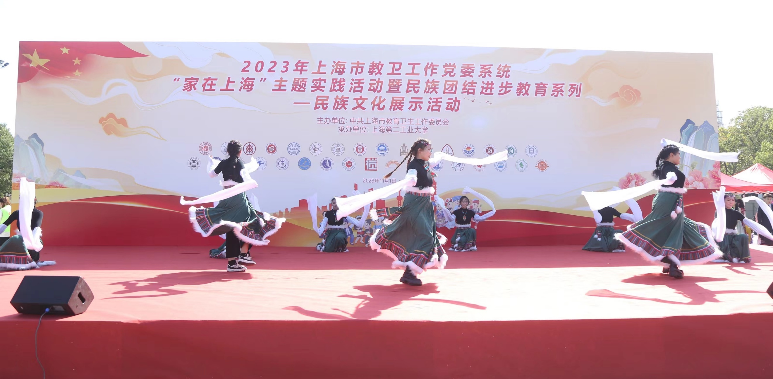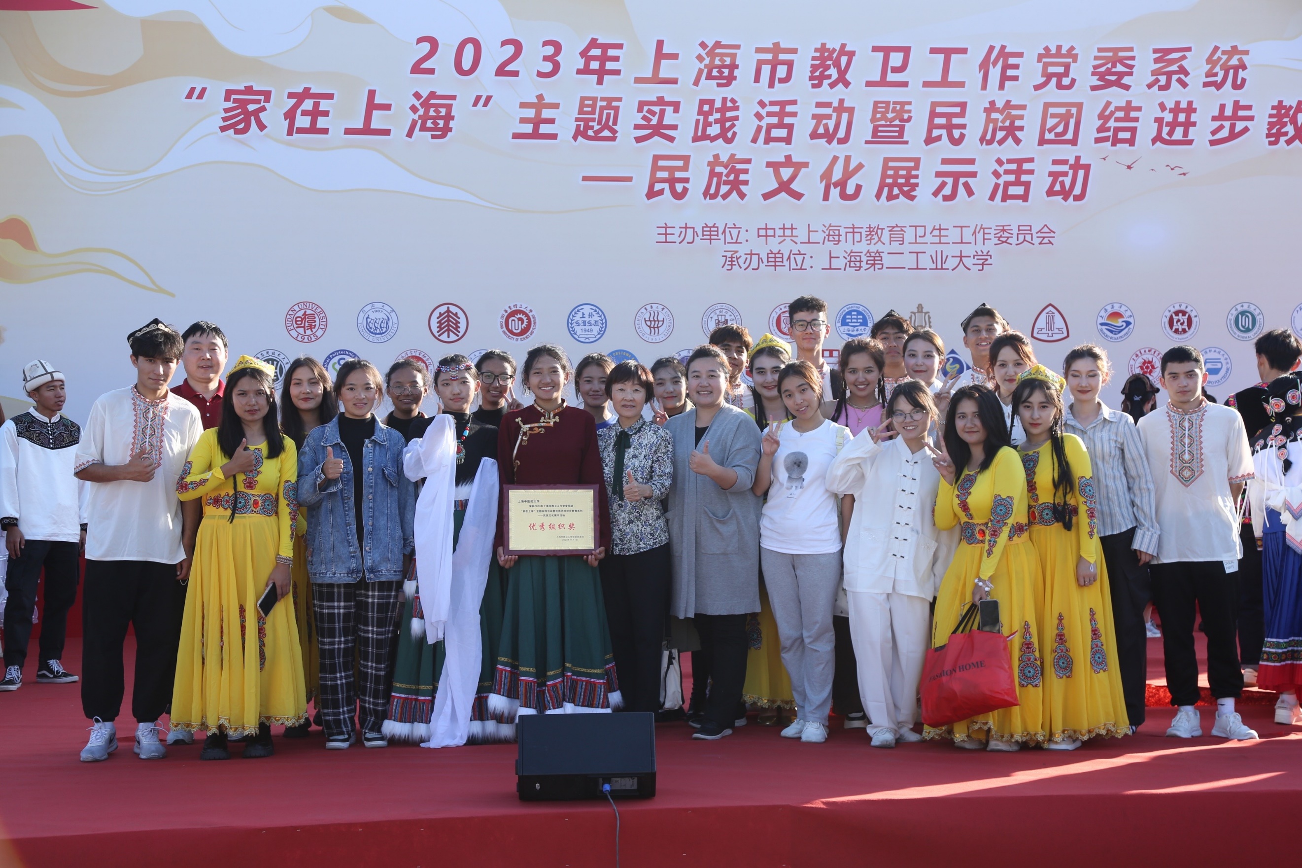 为深入学习宣传贯彻党的二十大精神,推进新时代党的民族工作高质量发展,铸牢中华民族共同体意识,11月1日,由上海市教卫工作党委主办、上海第二工业大学承办的2023年上海市教卫工作党委系统“家在上海”主题实践活动暨民族团结进步教育系列——民族文化展示活动在上海第二工业大学举行,此次活动齐聚沪上33所高校的近千名各民族师生参加。市教卫工作党委副书记张艳萍、市教卫工作党委统战处处长傅欣、市民宗局民族一处处长姜斌,上海第二工业大学相关领导和各高校统战干部及各民族学生代表出席了开幕式。天游ty8线路官网统战部、学工部、博物馆、民族联共同组织了包括汉族、维吾尔族、藏族、锡伯族、苗族等多民族的近30名师生代表参加此次文化展示活动,学校荣获“优秀组织奖”。