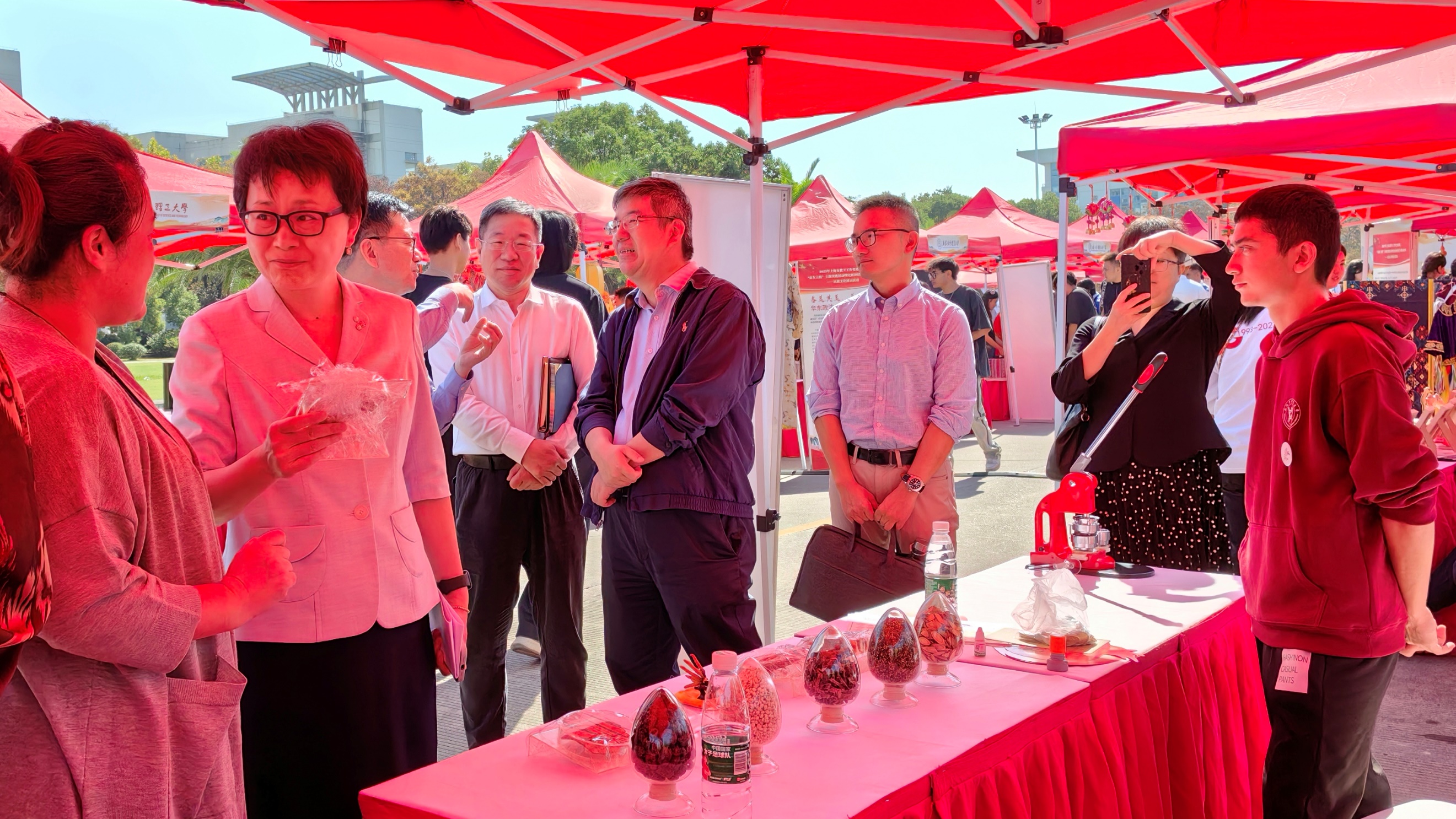 在“民族文化展”集市上,天游ty8线路官网重点展示了上海中医药博物馆文创作品、中药植物标本以及中医药养生茶系列,吸引众多参展师生驻足观摩和现场体验。学生们给前来体验的师生介绍天游ty8线路官网博物馆特色,制作中药特色徽章,讲解生活中常用中药的药用价值和使用方法,还亲手泡制了养生茶给大家品尝。临床专业的学生还为前来咨询的师生现场把脉,提供健康咨询等服务,在“望闻问切”中深刻感受中医药文化的博大精深,现场人气火爆,深受高校师生的喜爱和好评,展现了天游ty8线路官网学生的蓬勃朝气和文化自信。