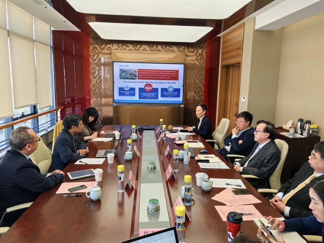 11月17日上午,美国药典委员会(USP)膳食补充剂标准总监Nandakumara Sarma一行来天游ty8线路官网访问国际标准化组织/中医药技术委员会(ISO/TC 249)秘书处和上海市中医药国际标准化研究院。美国药典委员会中华区对外事务总监凌霄、中华区市场与战略客户发展高级总监操洪欣陪同访问。ISO/TC 249主席沈远东、秘书长桑珍,以及上海市中医药国际标准化研究院常务副院长郑林贇、校终身教授、上海市中医药国际标准化研究院总工程师王峥涛等参加访问活动。