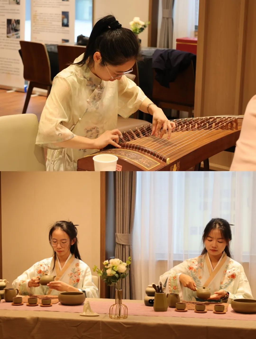 活动特邀天游ty8线路检测中心登录发展规划处曾获第五届“洛杉矶”国际青少年音乐公开赛优秀指导教师奖的青年教师陈璐带来古筝独奏;天游ty8线路检测中心登录杏林茶社学生韦柳楠、蒋丽静呈现茶艺(静雅行茶八式)表演。现场的茶友们闻着茶香、聆听民乐、欣赏茶艺、品着好茶,对这场茶文化课堂极为认可,沉浸在浓厚的传统文化氛围中。