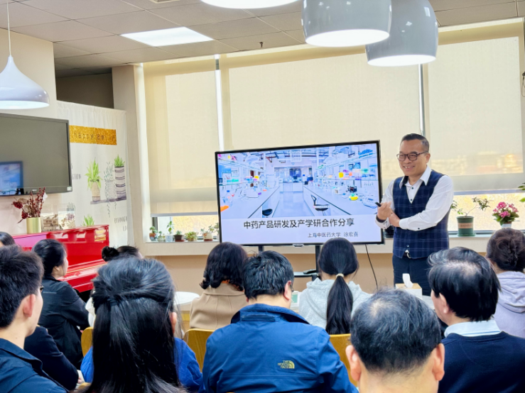 11月29日下午,天游ty8线路官网首席教授徐宏喜受邀开展“中药产品研发及产学研合作”主题讲座,中国科学院院士林国强及来自上海津村制药有限公司、上海市第七人民医院、上海市食品药品检验所、上海上药杏灵科技药业股份有限公司、上海睿智化学研究有限公司、上海百佳妇产医院、上海药谷药业有限公司等30多家医药相关的企事业单位代表近百人参加讲座和交流讨论。