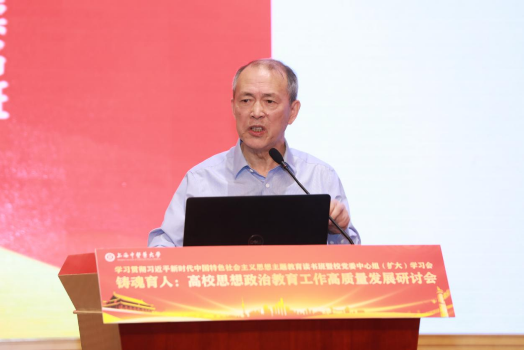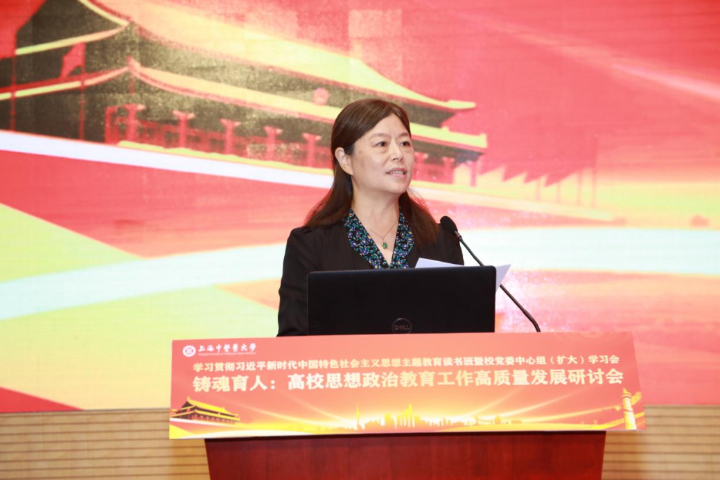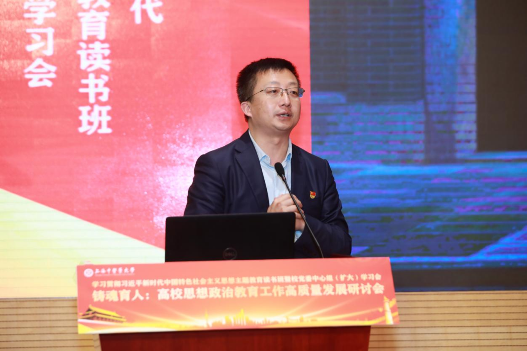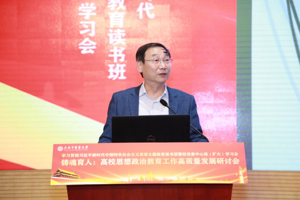 上海市教委德育处处长朱敏在致辞中强调,高校思想政治教育工作者,要以主题教育为契机,深入学习贯彻党的二十大精神,要注重学深悟透,推动理论学习往深里走,要注重知行合一,推动铸魂工程往实里走,要注重方法创新,推动思政工作往心里走。她介绍了上海市作为全国“三全育人”综合改革示范区,推动深化“三圈三全十育人”综合改革的创新做法,提出要聚焦重点任务,围绕大中小一体化,校内外一体化和知信行一体化,持续构建大思政工作格局,要用好“大课堂”,搭好“大平台”,建好“大师资”,站稳主阵地,讲好用好新时代“大思政课”。