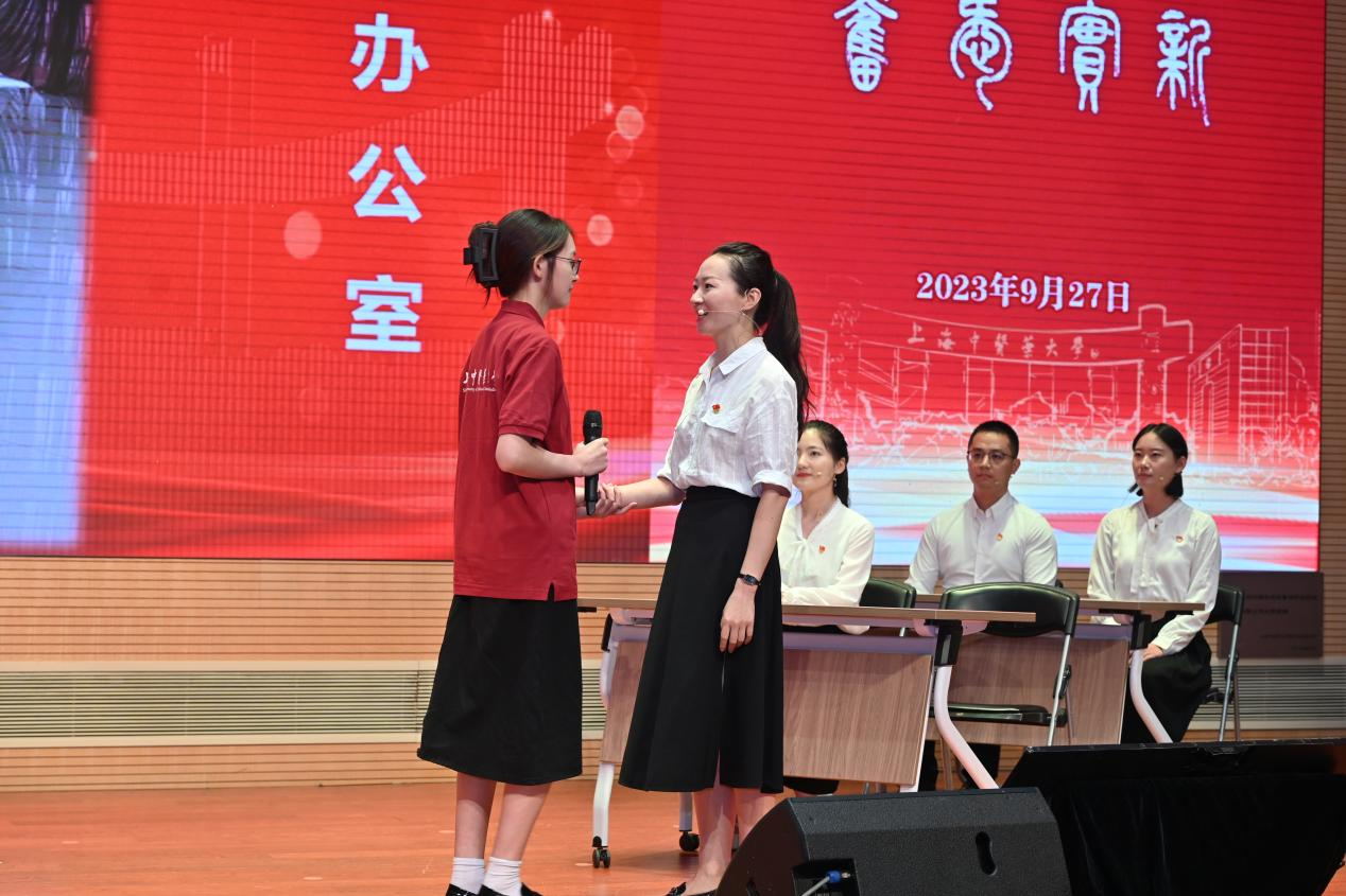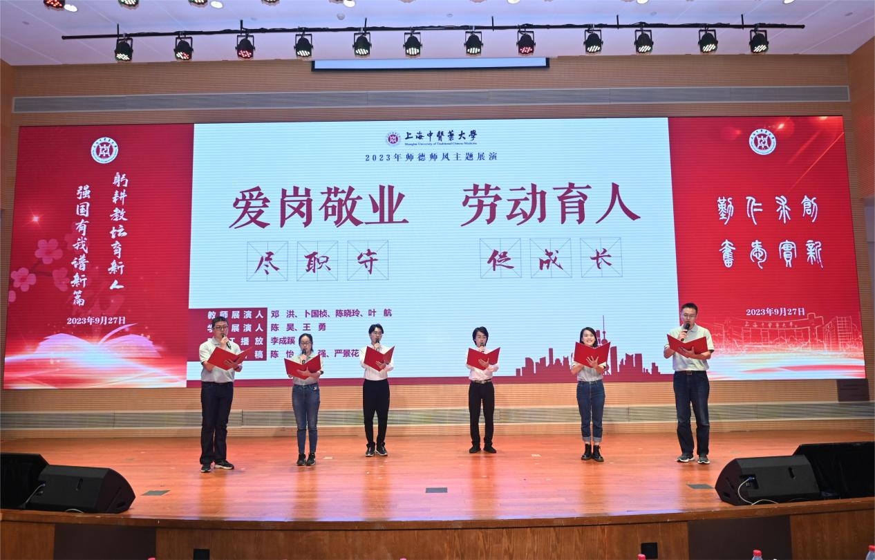 学校机关党委后勤党总支带来的原创朗诵作品《爱岗敬业尽职守 劳动育人促成长》,生动展现了校园中一支特殊的育人队伍,他们积极探索劳动育人新模式,提升服务育人新成效。医疗科普“网红”达人——学校附属普陀医院史兆雯医生立足自身岗位,从科普育人视角,讲述了自己身为医者、师者、传播者的鲜活故事。学校附属曙光医院师生展示的《大医泽被 师道领航》情景朗诵,展现了曙光援建医疗队员师生接力、传承使命的事迹。