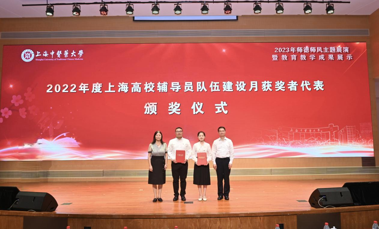 会上,对2022年度上海高校辅导员队伍建设月获奖代表季伟、张晴进行了颁奖表彰。