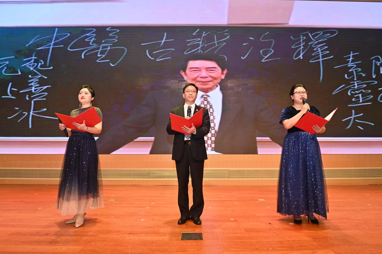 师生深情朗诵段逸山教授潜心治学、甘为人梯、躬身奉献讲台的感人事迹。