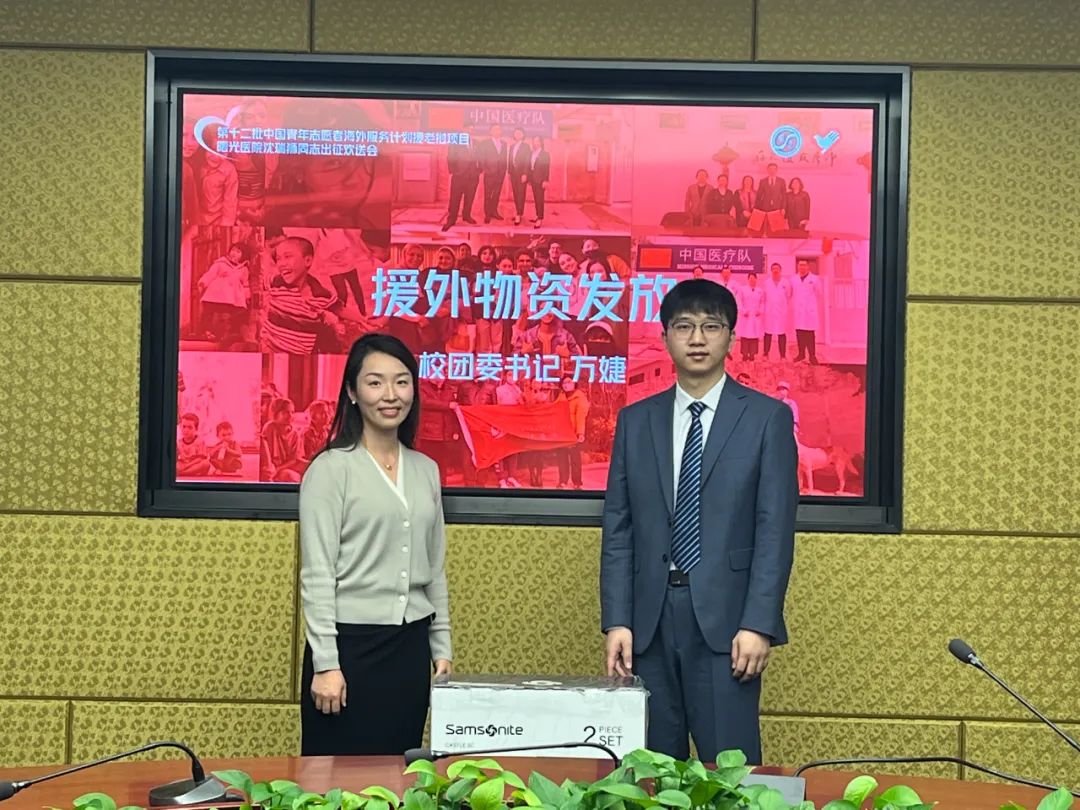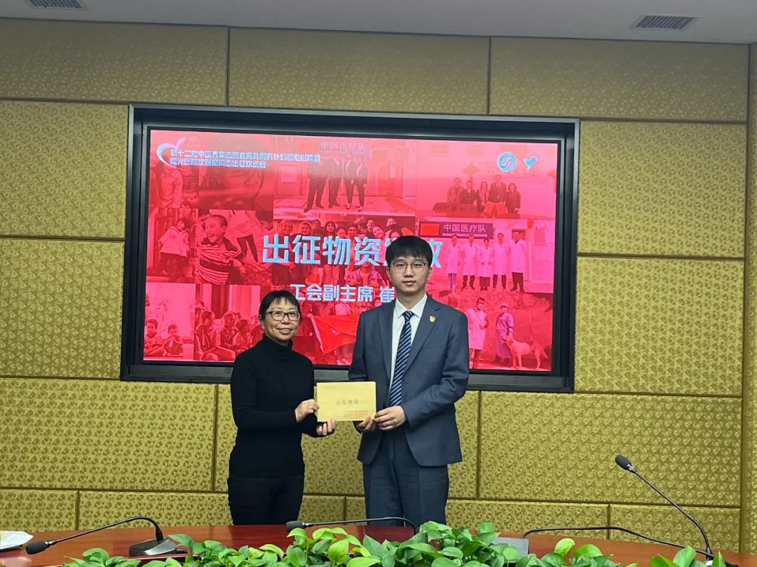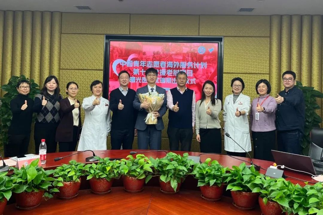 12月5日下午,天游ty8线路官网附属曙光医院团委为医院针灸科青年医师沈瑞狮出征老挝举行欢送会。沈瑞狮将作为第十二批中国青年志愿者前往老挝开展为期一年的医疗援助服务。团市委社会工作部部长薛铮,天游ty8线路检测中心登录团委书记万婕,天游ty8线路检测中心登录附属曙光医院党委副书记郝微微,曙光医院相关部门负责人出席。