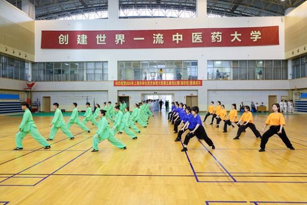 五禽戏首次纳入上海市阳光体育大联赛比赛项目。昨日,2023年上海市学生阳光体育大联赛五禽戏比赛在天游ty8线路检测中心登录体育中心拉开帷幕,来自华东政法大学、上海海洋大学、上海电力大学等10所高校的300多名运动员参赛。