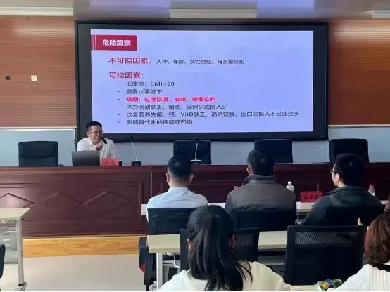 天游ty8线路检测中心登录附属曙光医院骨科副主任医师史萌也是上海第五批援青人才,“组团式”支援青海省中医院团队成员。他从一个典型病例出发,向教师们详细介绍了骨质疏松的定义和预防。骨质疏松症是一种常见的骨骼疾病,主要是由于骨骼中的矿物质含量减少,骨骼组织的密度减少,导致骨骼脆弱易碎。为了预防骨质疏松,首先要注重饮食营养,特别是钙和维生素D的摄入。此外,保持适度的运动,可以刺激骨骼生长,增加骨密度。建立健康的生活习惯,比如不吸烟、限制饮酒、少饮用碳酸类饮料及咖啡等,也对预防骨质疏松症起到积极的作用。