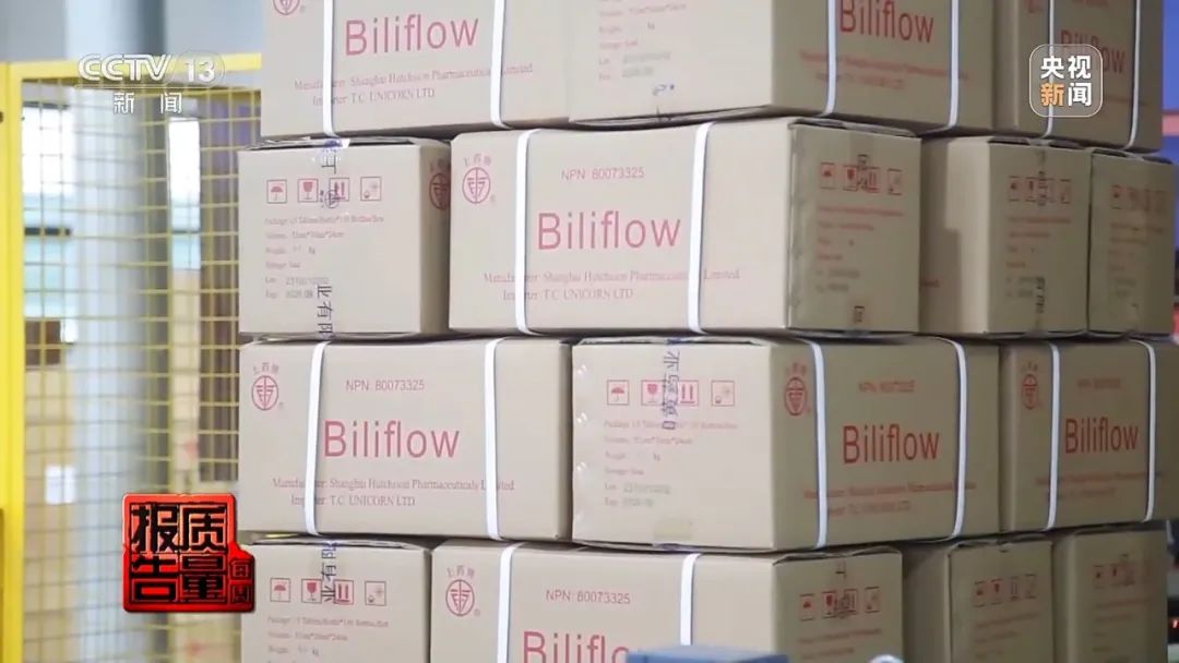 在上海市奉贤区,一箱箱胆宁片从仓储库房中出货,装车、转运,开启了前往加拿大的旅途。这已经是这家生产企业出口的第二批胆宁片。