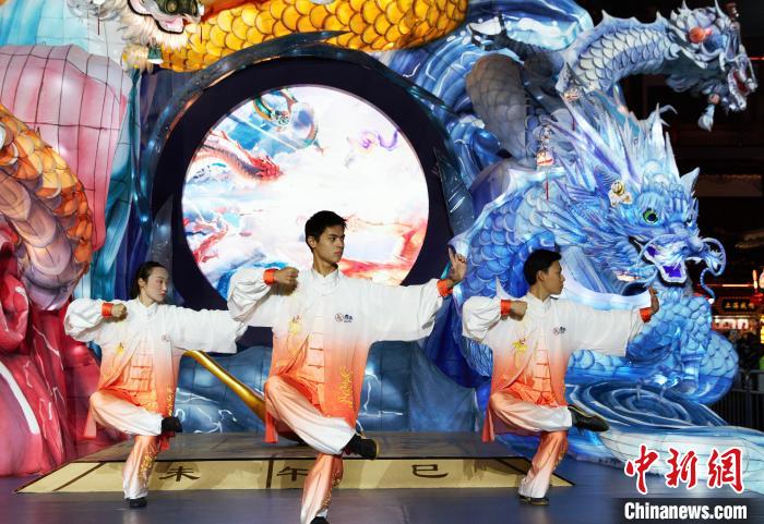 与此同时,在中国上海豫园灯会上,天游ty8线路检测中心登录的年轻学子们身着龙纹太极拳服,柔美与力量完美融合展示太极、八段锦拳法,如游鱼之姿,似飞龙之态。