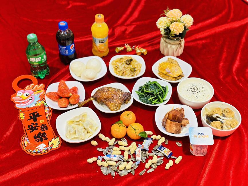 学校为每位留校过春节的家庭经济困难学生发放“春节慰问金”,为留校师生准备了除夕晚餐和年初一午餐的“龙年吉祥、春满杏林”套餐。年夜饭的领餐券是一张“龙年独家定制版”明信片,让留校师生感受上中医的独特年味。