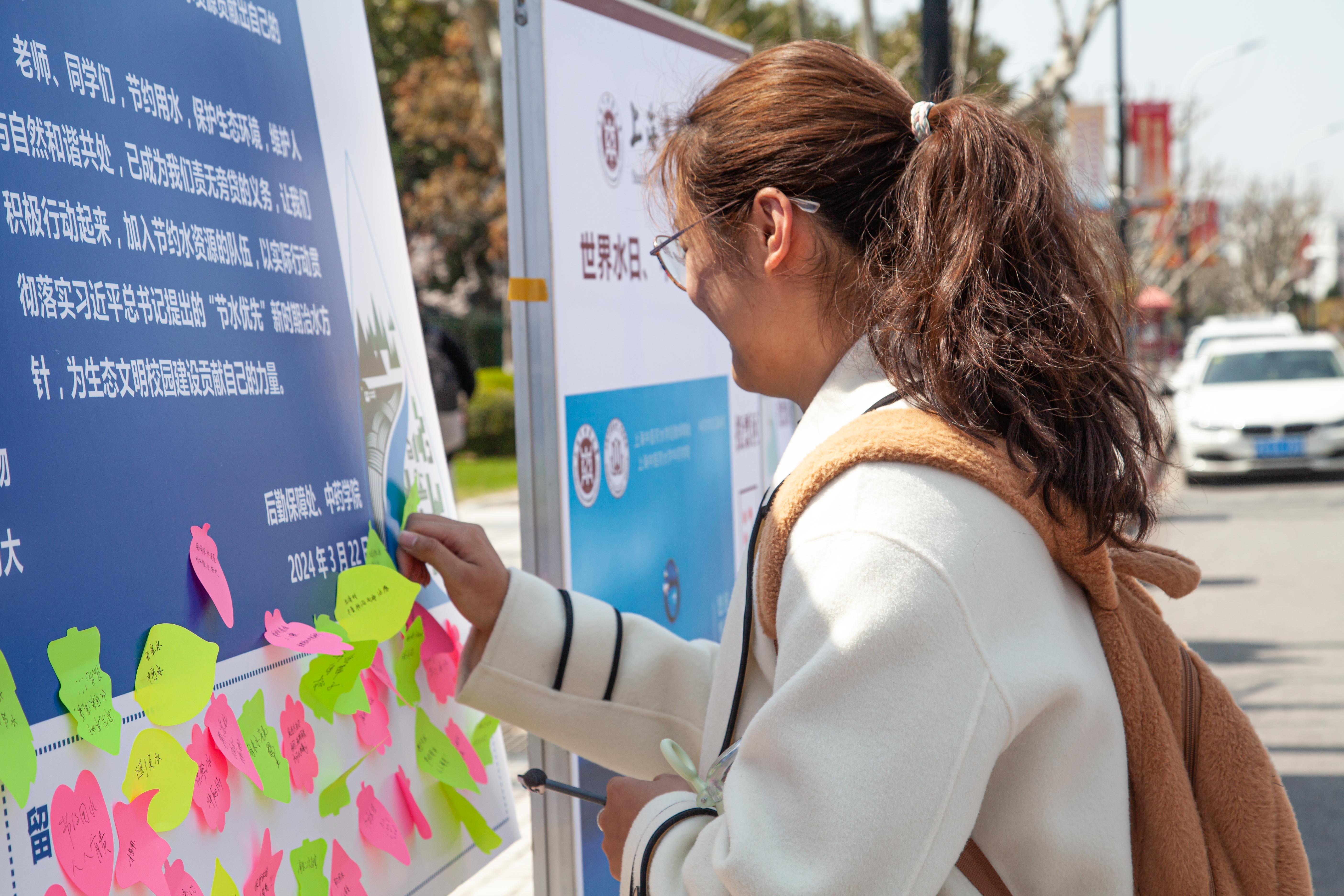 活动现场,师生们一起为“节水优先 美丽申城”打卡,共做“节水达人”。通过扫描二维码,进行趣味问答,了解国家和上海市节水用水的法律法规、世界和中国水文现状、市民用水节水常识等。大家纷纷提笔,在节水倡议书上签上自己的名字,并分享自己的节水小妙招,为日常节水贡献自己的智慧。中药学院带来了岐黄学子亲手设计的海报作品,让参与活动的师生为心中最喜欢的作品投票。此次活动不仅让学生们在互动体验中树立了生态环保意识,维护人与自然和谐共处,也让节约水、珍惜水、保护水的理念在培养未来中医药创新人才的沃土上生根发芽。后续,在“中国水周”期间,后勤保障处和中药学院将联合开展节水标语设计和节水短文征集系列主题活动。