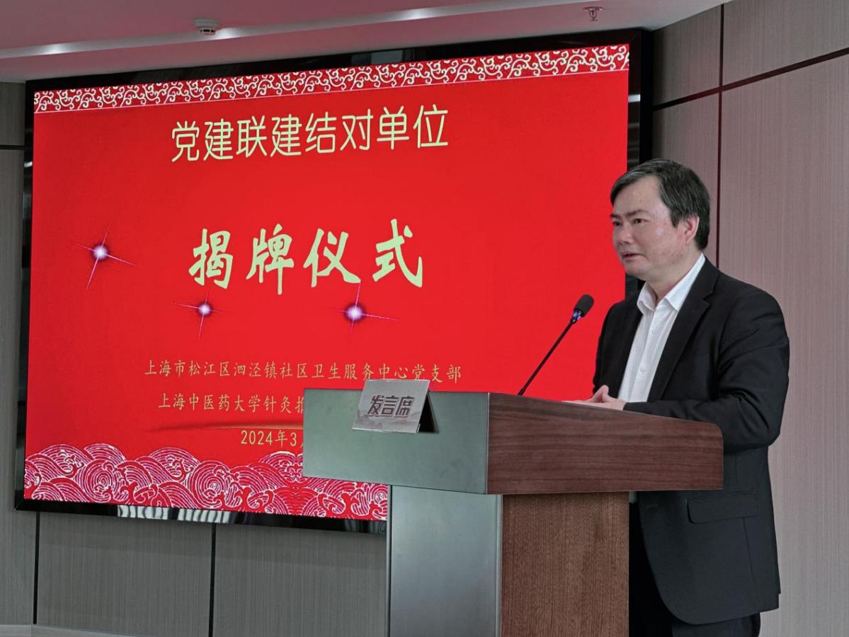 3月22日,上海市非物质文化遗产内功推拿疗法传承工作室、内功推拿流派传承工作站揭牌仪式在松江区泗泾镇社区卫生服务中心举行。天游ty8线路检测中心登录针灸推拿学院党委书记陈秋生、副院长姚斐,松江区卫生健康委员会主任胡春,泗泾镇党委副书记、镇长孙长城,上海市非物质文化遗产“内功推拿疗法”代表性传承人赵毅教授,主要传承人陆萍教授、秦元副教授,泗泾镇社区卫生服务中心党支部书记朱福妹、主任徐忠于出席活动。