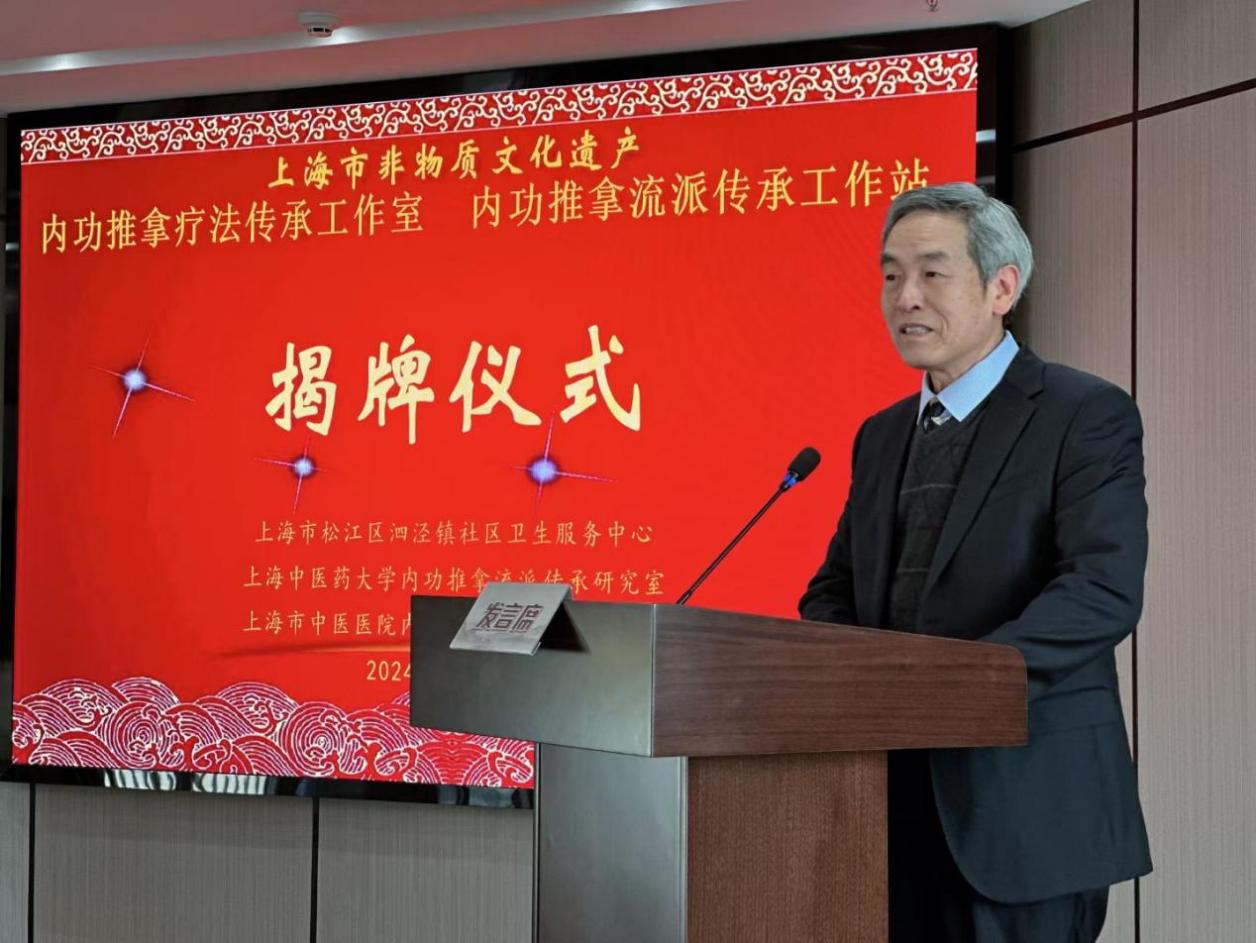 在松江区泗泾镇社区卫生服务中心成立内功推拿流派传承工作室和工作站,完成了从大学到各级医疗机构的全覆盖,为内功推拿流派的传承与发展奠定了扎实基础,为人民群众的健康福祉贡献更多力量。(针灸推拿学院)