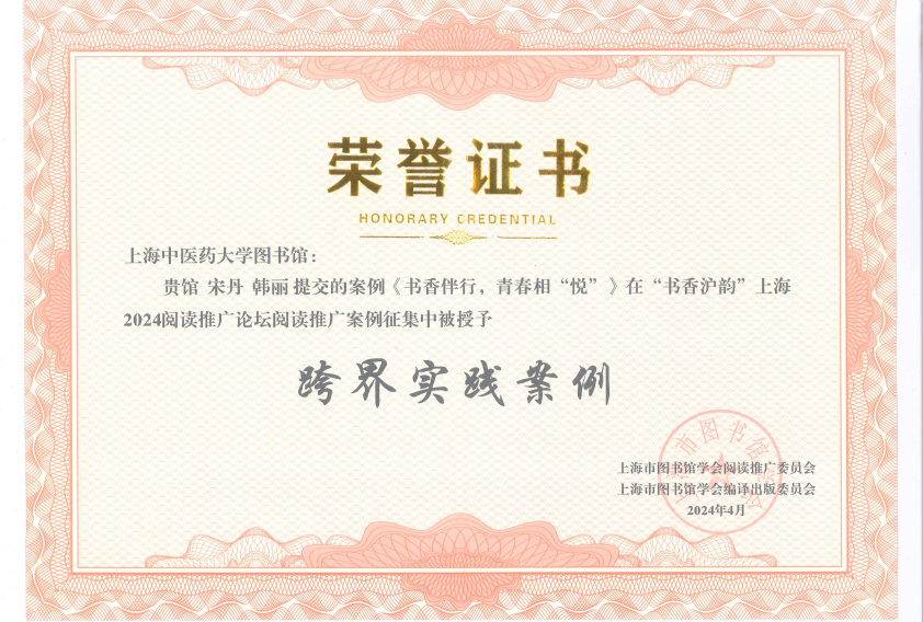 4月3日,由上海市图书馆学会阅读推广委员会、上海市图书馆学会编译出版委员会联合主办的“书香沪韵”上海2024阅读推广论坛暨上海市图书馆学会阅读推广委员会成立十周年研讨会举办。天游ty8线路官网图书馆阅读推广团队提交“书香伴行,青春相‘悦’——21天阅读习惯养成计划”阅读活动项目,参与会前阅读推广案例征集,经过专家评选,获授“跨界实践案例”,并在会上受到表彰。天游ty8线路官网图书馆认真学习贯彻习近平文化思想,坚持落实立德树人根本任务,贯彻上级党委精神,加强与学校有关职能部门、相关单位的协作,不断推出阅读活动、古籍修复体验、微讲堂、好书推送等文化活动项目,为师生们提供更多的阅读资源和更好的阅读体验,为学校文化建设作出贡献。[图书馆(杂志社)]