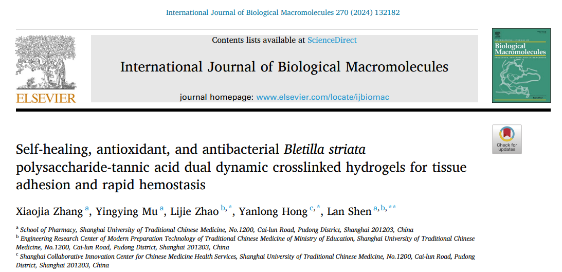 中药学院沈岚团队开发了基于“药辅合一”的新型白及多糖基双动态交联水凝胶材料用于伤口止血粘合
