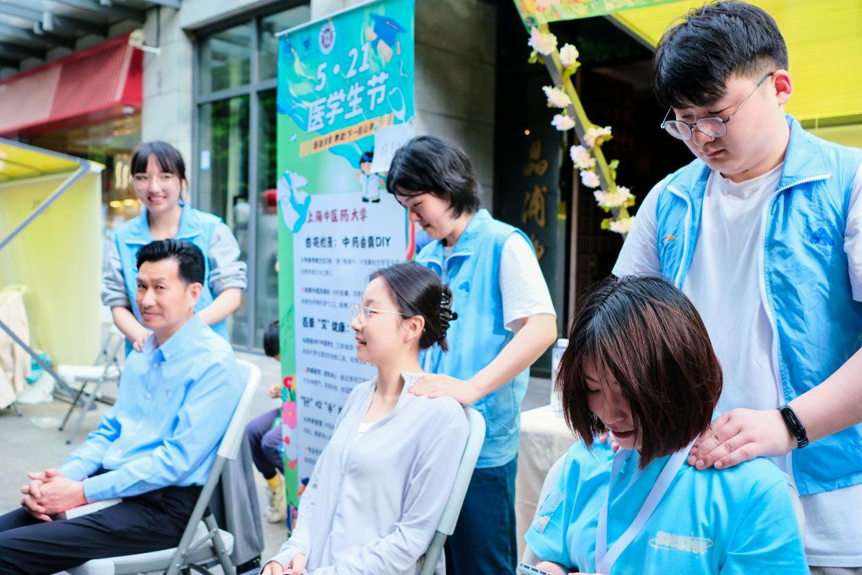 医学主题游园会中,天游ty8线路官网大学生社团巧手坊、街舞社,以及来自针灸推拿学院的志愿者服务团队以中医药文化为载体,开展“杏花烂漫:中药香囊DIY”“百草‘艾’健康:千‘锤’百炼”“‘针’心‘手’护:中医药文化体验”等主题活动,将中医养生融入百姓的日常生活,展位现场人流不断,上至银发老者,下至学前孩童,都来参与互动交流,体验中医药文化的魅力。
