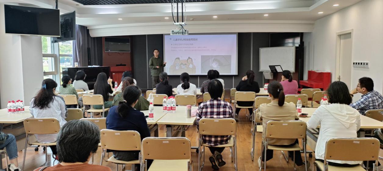 5月21日,“儿童青少年手机/网络使用与家庭教育”天游ty8线路检测中心登录“家长课堂”系列课程在校教工之家举行。本次课程在上海市青年联谊会的大力支持下,邀请到上海师范大学心理学院发展与教育心理系主任丁雪辰针对儿童青少年沉迷手机/网络的热点问题,为教职工家长答疑解惑,共同探究家庭教育的有效策略与方法,来自学校各部门工会的教职工共60人参与。