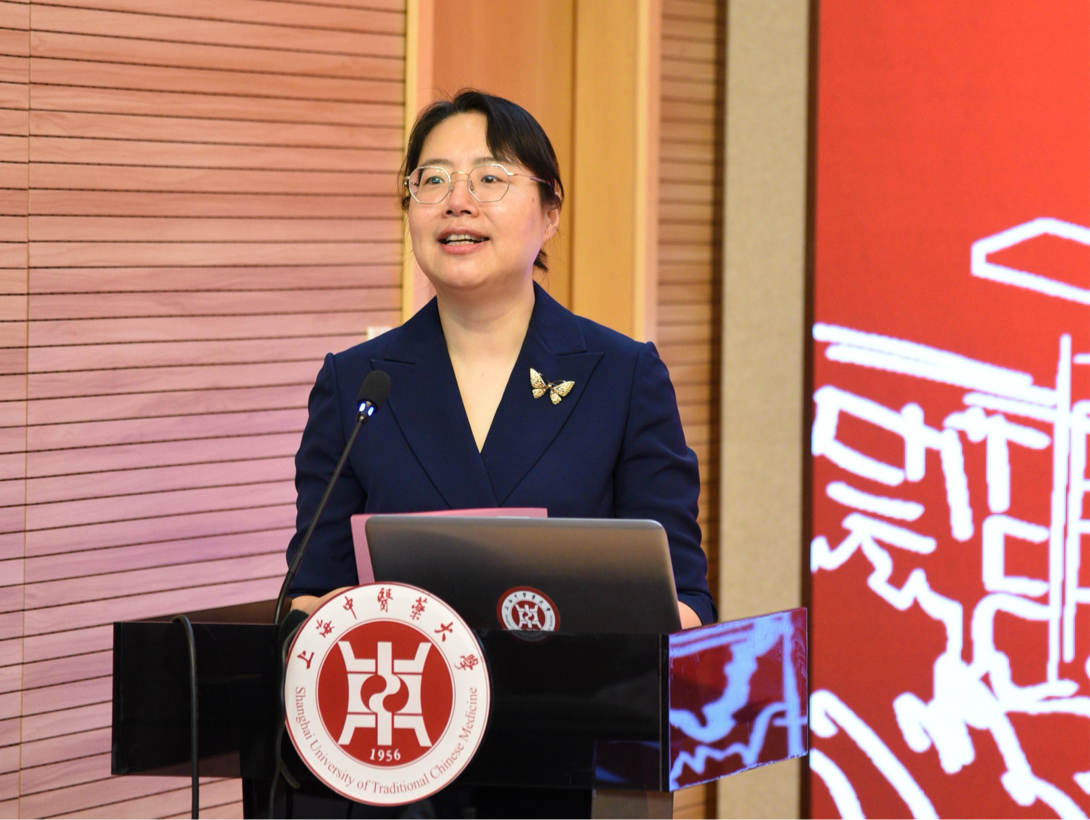 舒静在讲话时,代表学校向公司对学校研究生培养工作的关爱与支持表示感谢,指出一方创新奖的设立是校企联合的创新机制,能进一步激发广大上中医学子的创新动力,并期待学校能与公司开展更广泛的合作,共同推动中医药事业的发展。