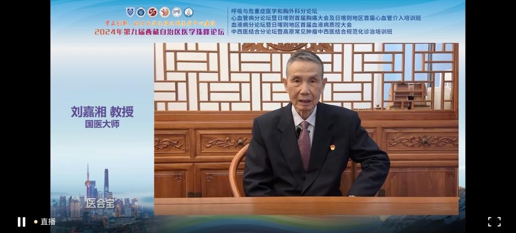国医大师刘嘉湘教授发表了线上致辞。他表示,此次论坛的举办对于提升西藏地区中西医结合肿瘤诊治水平、加强高原肿瘤中西医结合诊治规范化具有重要意义,期待各位中医同道守正创新,衷中参西,建立规范化的肿瘤防治体系,充分发挥中医药在肿瘤疾病预防、治疗、康复中的独特优势,为中医药事业做出新贡献。