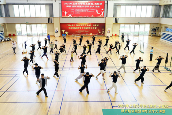 这场由教育部中华优秀传统文化五禽戏传承基地、上海市武术协会、上海市教育系统关工委“邱丕相工作室”主办,上海市大学生体育协会武术分会、上海无极馆武学中心承办的2024年上海市学校五禽戏、太极球师资培训班暨中华武学大讲堂,请来“柔力太极球运动创始人”、华东师范大学民族传统体育学学科带头人杨建营和天游ty8线路检测中心登录武术队主教练、体育部副教授康萌等“武林高手”主讲。天游ty8线路检测中心登录40余名大学生武术爱好者也参与了学习。