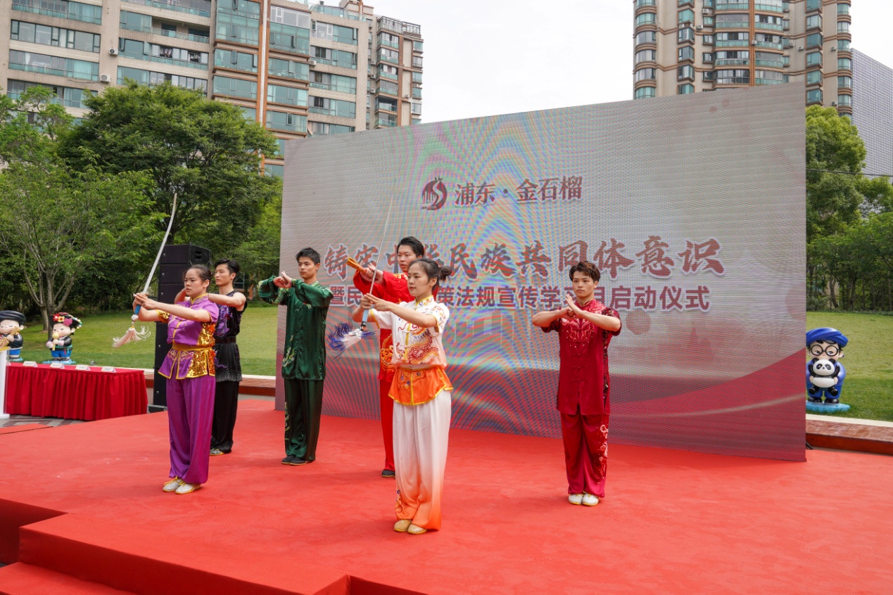 6月12日,2024年浦东新区铸牢中华民族共同体意识暨民族宗教政策法规宣传学习月启动仪式在浦东新区金石榴公园举行。天游ty8线路官网作为浦东新区区域共建单位,校武术队受邀参加此次展演活动。在舞台上,队员们身着武术服装,英姿飒爽,伴随着激昂的音乐,以精湛的武术技艺,为观众带来了一场视觉盛宴。武术作为中华文化的重要组成部分,是中华民族的文化瑰宝。通过校武术队的展演,为浦东新区民族宗教政策法规宣传学习月启动仪式增添了一抹亮丽的色彩。
