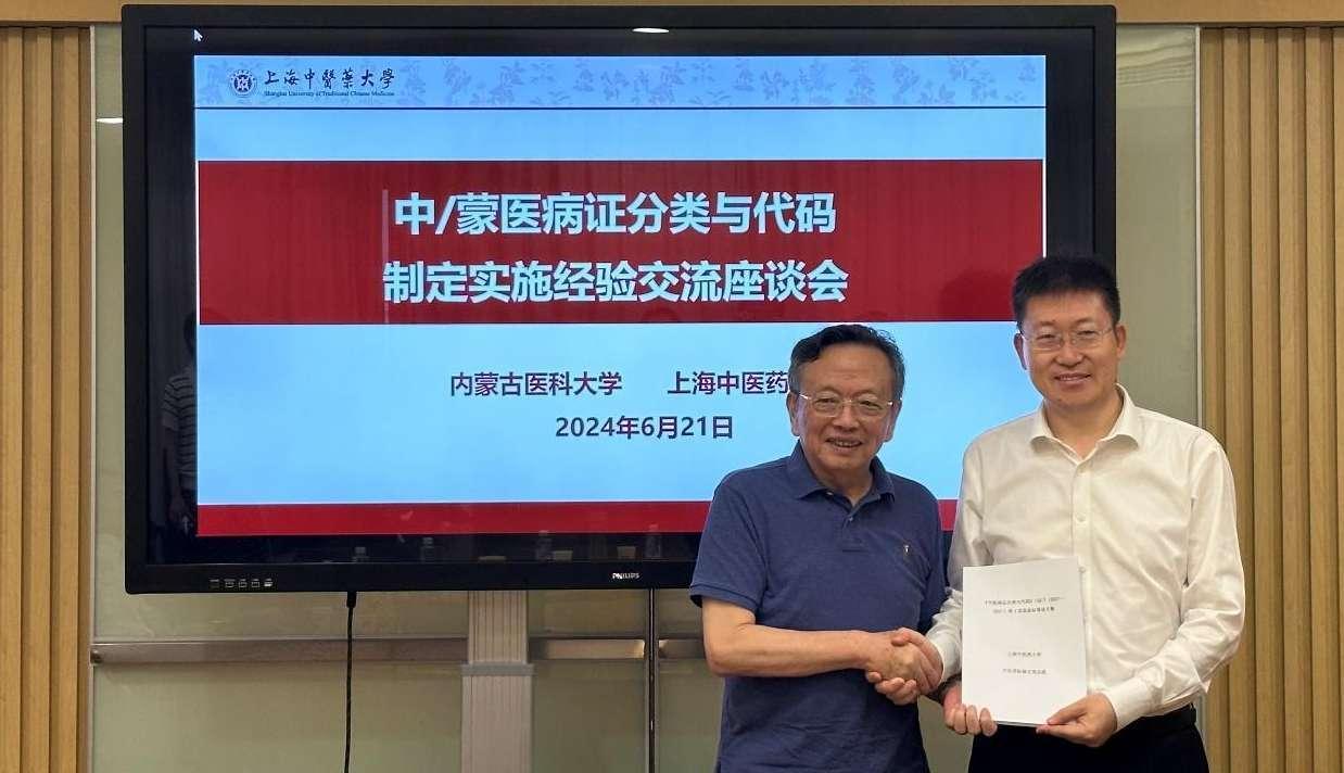 6月21日上午,内蒙古医科大学副校长伊乐泰、全国中医药高等学校教学名师斯琴等一行到天游ty8线路官网开展《中医病证分类与代码》国家标准制定与实施经验交流。天游ty8线路官网党委副书记、副校长孟煜,科技人文研究院副院长陈丽云,上海文史馆馆员、上海市名中医、教授朱邦贤,中医方证信息研究中心及中医国标修订项目组相关专家出席座谈会。