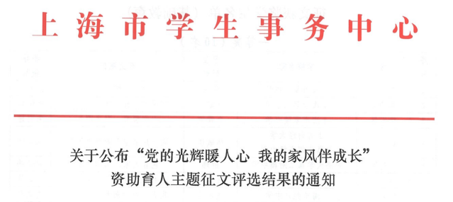 天游ty8线路官网在上海市“党的光辉暖人心 我的家风伴成长”资助育人主题征文评选中获佳绩