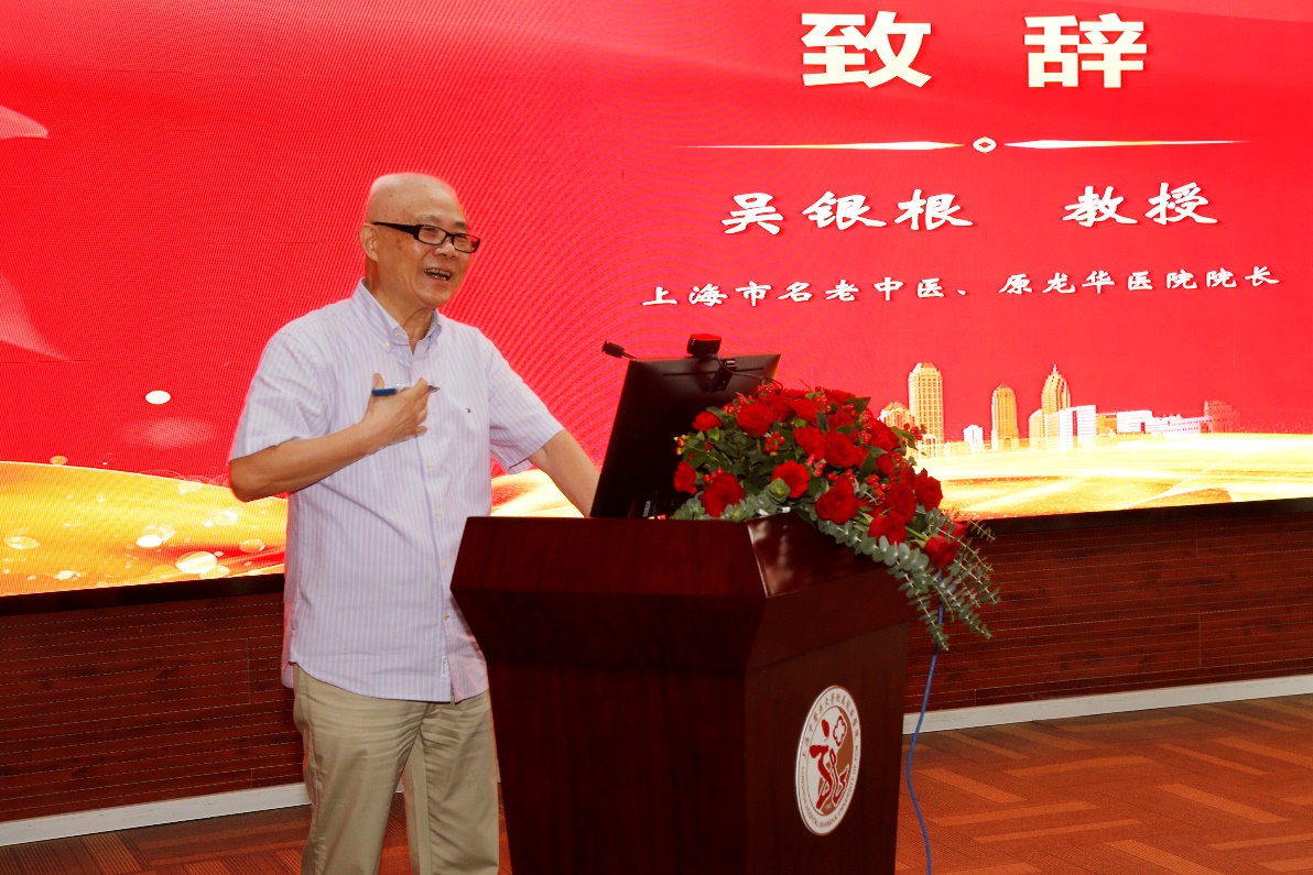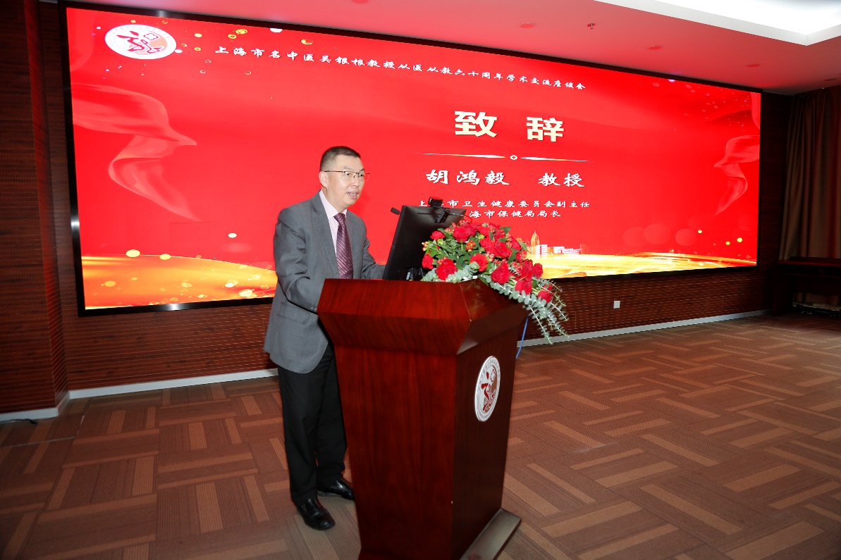 胡鸿毅祝贺吴银根教授从医从教60周年,热烈欢迎国医大师、各位名中医及众多医师后学们齐聚一堂,他希望年轻医师们传承发扬好名中医经验,学习老师们的治学精神、做事态度,进一步推动海派中医的发展及创新。