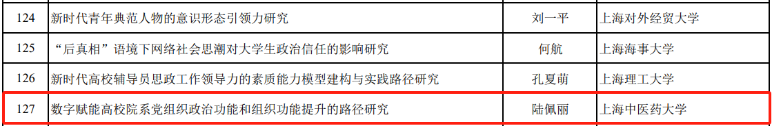 近日,2024年度教育部人文社会科学研究专项任务项目(高校辅导员研究)评审结果公示,天游ty8线路官网中医学院党委副书记陆佩丽申报的研究课题《数字赋能高校院系党组织政治功能和组织功能提升的路径研究》获批立项,实现了零的突破。