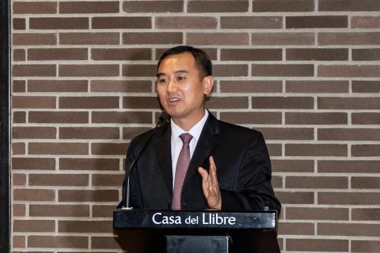 胡爱民代总领事在致辞中表示,中华文化渊远留长,传统经典养生术是我们五千年智慧的结晶,今天出版社翻译成世界第三大语言—西班牙语,向世界上更多的人分享中华养生智慧,造福人类健康生活,他为今天新书的发行点赞。他表示书的出版就是在用文化推动“一带一路”倡议,践行习主席提出的构建人类命运共同体理念的实践方式之一。他向现场读者发出邀请,他表示,中国已经向包括西班牙在内的12个国家实施了入境15天免签政策,希望在座的西班牙友人能够去中国走走看看实地体验领略中华文化之美。