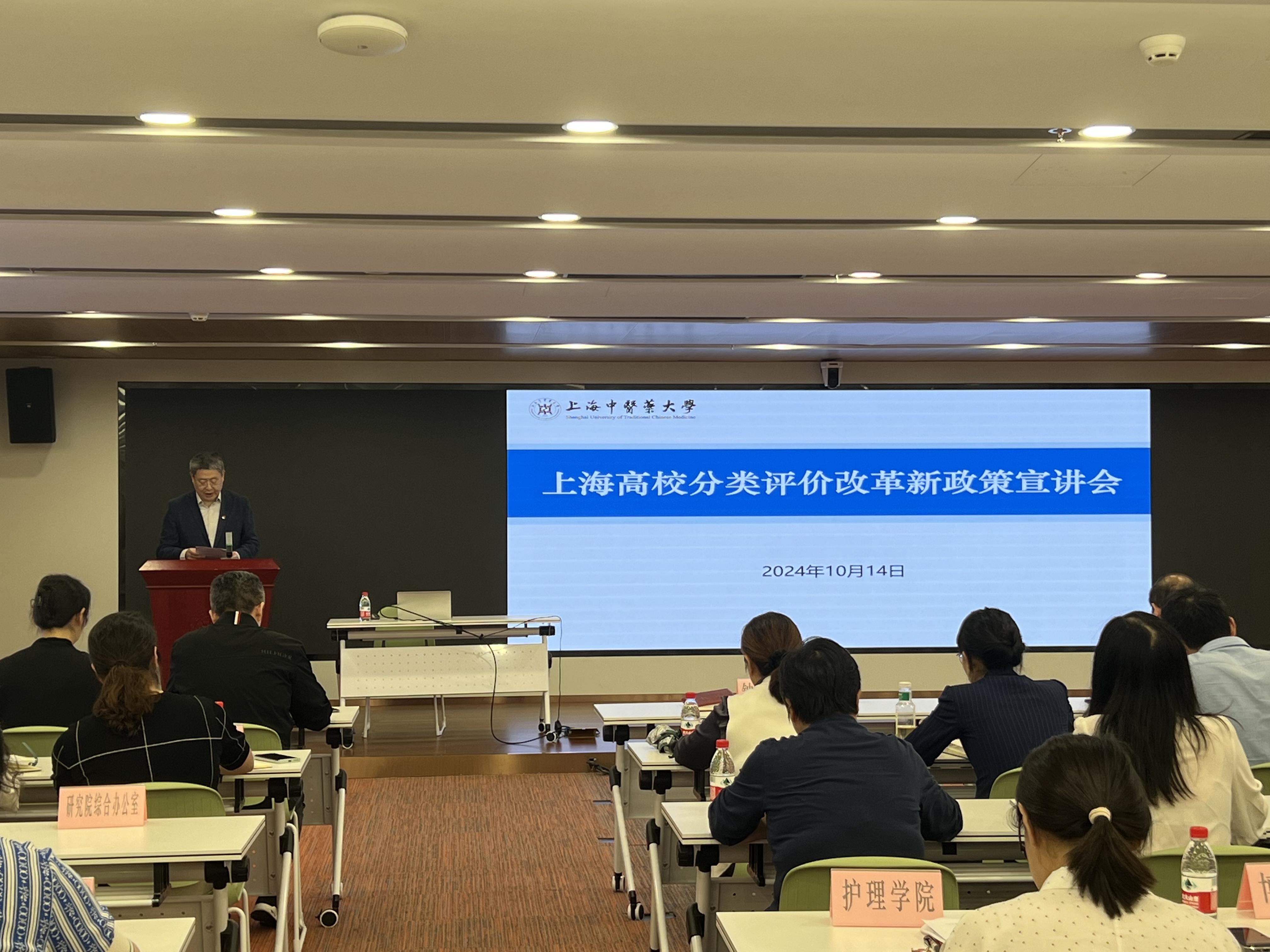 10月14日下午,上海高校分类评价改革新政策宣讲会在天游ty8线路官网中医药国际标准化大楼辅楼301会议室召开,上海市教育科学研究院院长桑标应邀来校作专题宣讲。天游ty8线路官网副校长钟力炜,各机关职能部处、二级院所负责人及学校分类评价相关工作人员等近百人参加宣讲会。会议由钟力炜主持。